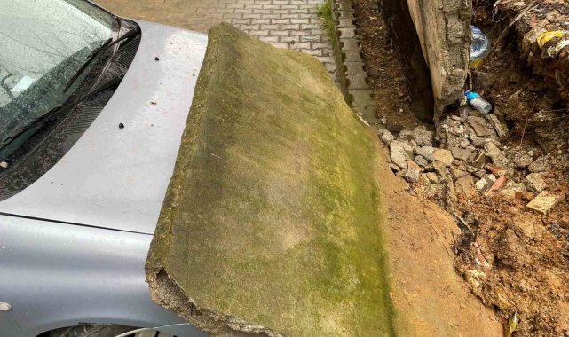 Kadıköy'de bir sitenin otoparkında park halinde bulunan otomobilin üzerine istinat duvarı düştü.