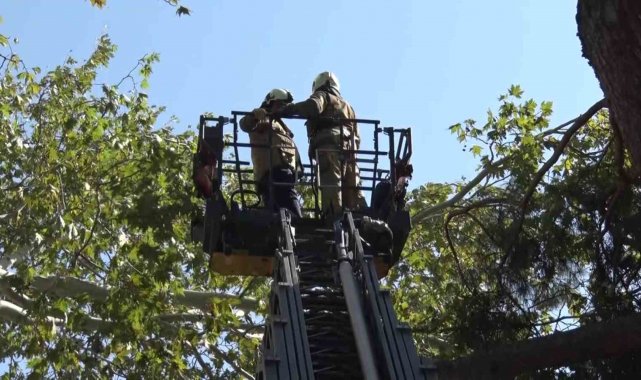 Öte yandan, kırılan ağacın altında park halinde bulunan otomobile, ekiplerin titiz ve dikkatli çalışması sayesinde şans eseri zarar gelmedi. Olayda şans eseri ölen yada yaralanan olmazken, kırılan ağaç parçası ekipler tarafından sokaktan temizlendi.