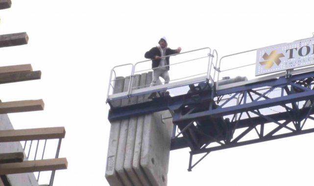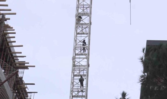 Kadıköy'de maaşlarını alamadıklarını iddia eden inşaat işçileri vinç kulesine çıktı
