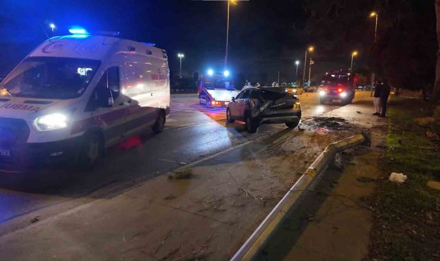 Kadıköy'de virajı alamayan sürücü, takla atıp elektrik direğini devirdi