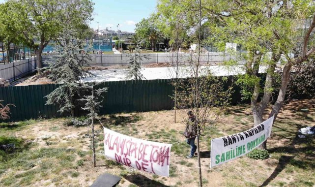 Fenerbahçe Kalamış Dayanışması üyesi Nurettin Erbek, Cuma sabahı saat 05.00 civarında alanın adeta bir 'şafak operasyonuyla' betona gömüldüğünü belirterek, "Buraya yaklaşık 100 ton beton döktüler. Ardından da halk görmesin diye utanç paravanları koydular. Biz doğaya ve yaşama sahip çıkmak için burada nöbet tutuyoruz" dedi.