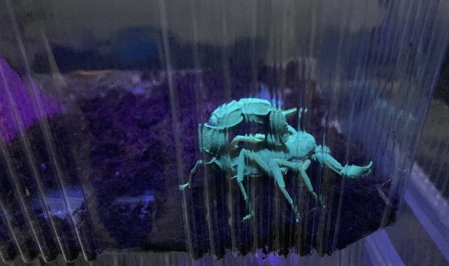 "Bakımları belirli bir sıcaklıkta olmaları gerekiyor. Yaklaşık 12 ila 27 derece arasında mavi akrep ve sarı akrebe göre değişiyor. Bizde iki tür var. Sarı ve mavi akrep. Gübreli toprak kullanıyoruz. Ahır kısmında oldukları için daha konforlu bir yaşam alanı sunuyoruz onlara. Sularını haftada bir veriyoruz. Çok su içmiyorlar. Canlı yem veriyoruz. Hamam böceği ve çekirge gibi yemler veriyoruz ve kendileri avlayarak öldürüyorlar."