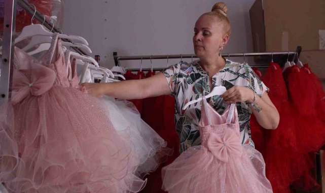 Kadın girişimci Hülya Bişirici, sadece çocuklara özel abiye elbiseler üretiyor. Hem tasarlayıp hem de dikim yapan Bişirici, ürünlerini İzmir'den ülkenin dört bir yanına gönderiyor.