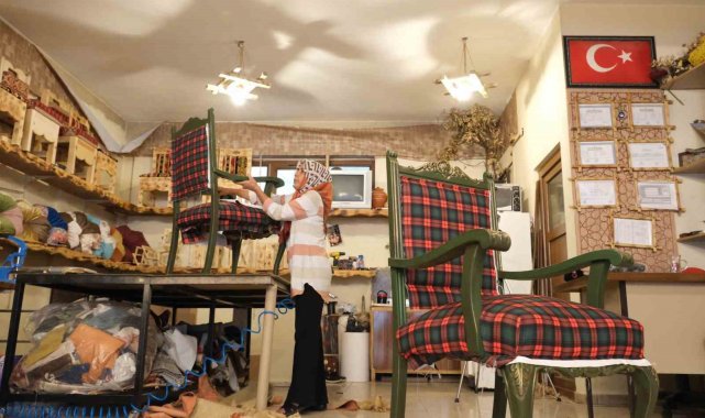 Erzincan'da 15 yıl önce kendi imkânıyla kurduğu işletmesinde sedir, şark köşesi ve sandalye gibi ahşap ürün imalatı yapan kadın girişimci tek başına hem üretim hem de döşeme tamiri yaparak ev ekonomisine katkı sunuyor.
