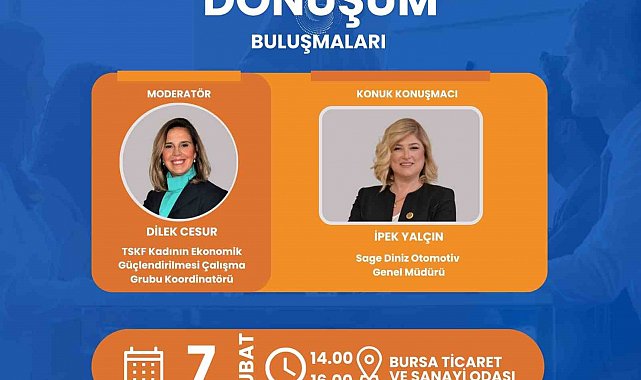 Toplantının konuğu, Sage Diniz Otomotiv Genel Müdürü İpek Yalçın olacak. Yalçın, "Kadın Liderlerle Dönüşüm Buluşmaları" programında TSKF Kadının Ekonomik Güçlendirilmesi Çalışma Grubu Koordinatörü Dilek Cesur'un moderatörlüğünde, katılımcılarla iş dünyasında kadının yeri ve önemi ile ilgili düşüncelerini paylaşacak.