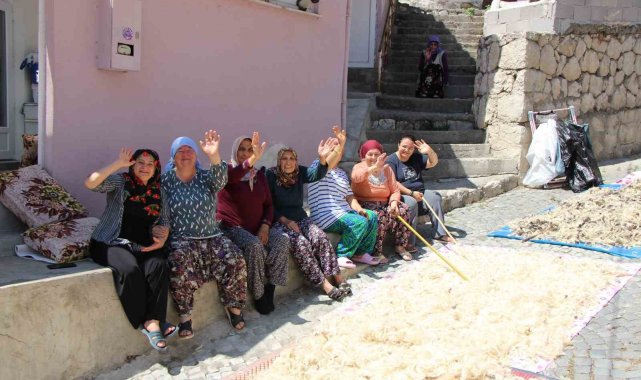 Kadın muhtar başlattı: Yünleri imece usulü havalandırıyorlar