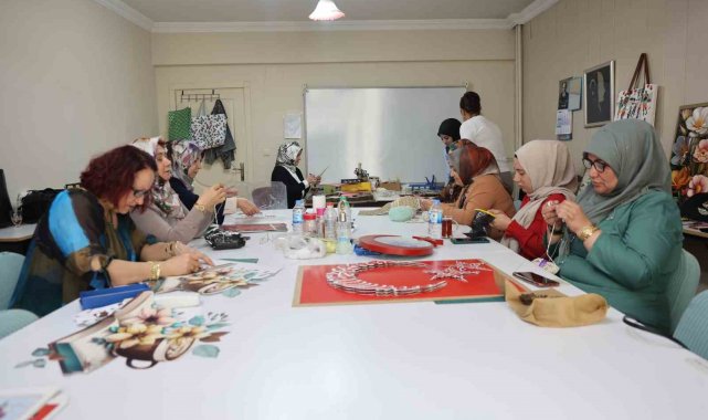 Kadınlar, el sanatları kursunda hem öğreniyor hem de ev ekonomisine katkı sağlıyor