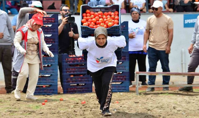 Antalya'nın Kumluca ilçesindeki 26. Tarım ve Seracılık Festivali kapsamında gerçekleştirilen yarışmalar renkli görüntülere sahne oldu. Etkinlikte domates yeme yarışmasında bir yarışmacı 1,5 kilo üzerinde domates yiyerek birinciliği elde etti.