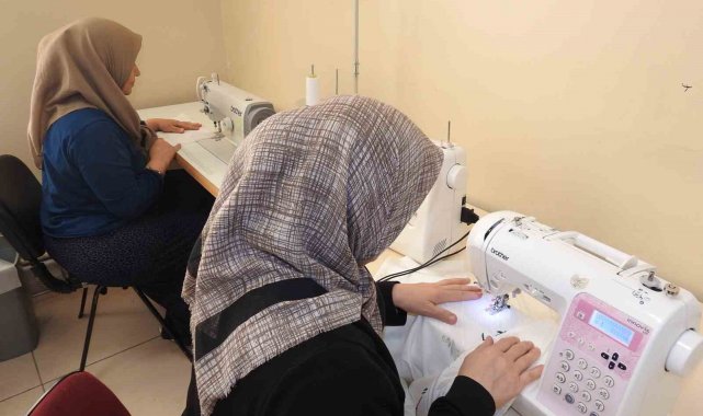 Gaziantep'te gittikleri dikiş nakış kurslarında meslek öğrenen kadınlar, yaptıkları ürünleri satarak da ev ekonomilerine katkı sağlıyor.