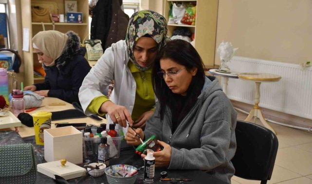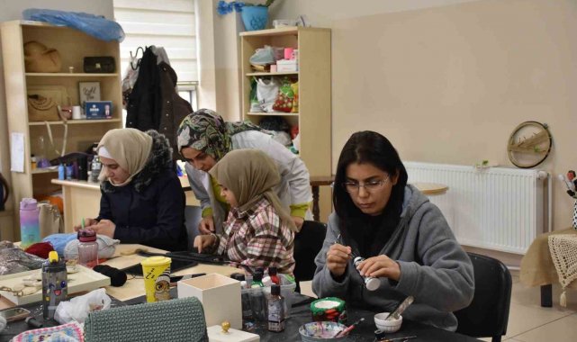 Kurs eğitmenlerinden Pınar Çakallı, "Kursumuzda ahşap boyama, geri dönüşüm, epoksi tasarımları yapıyoruz. Kursumuza her yaştan öğrenciler katılmaktadır. Kadınlar çok güzel boyama ve çok güzel örgüler yapıyor. Kadınların çıkardığı ürünler ise gerçekten çok şahane ve çok mükemmel. Boyamaları da çok güzel. Kadınlar aynı zamanda yaptıkları ürünleri satarak ailesine de katkıda bulunuyorlar" diye konuştu.