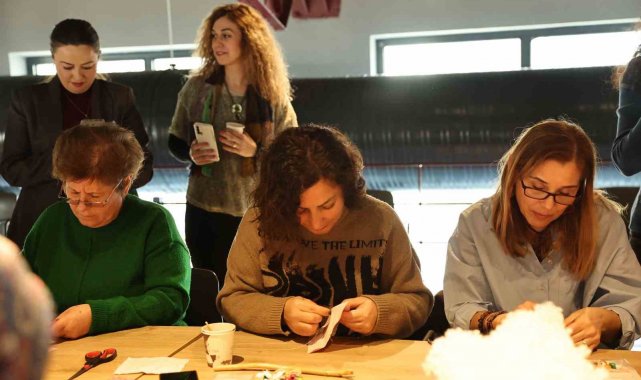 Pancar Deposu'nda gerçekleştirilen atölyeye katılan kadınlar, Gülçin Çalık eğitmenliğinde kapı süsleri tasarladı. Katılımcılar, el emeği ürünlerine son şeklini vermek için özenle çalışırken, aynı zamanda keyifli vakit geçirdi.