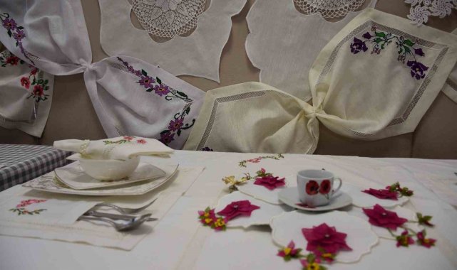 Gaziantep'te kadınların katıldıkları mefruşat kursunda bin bir emek ve zahmetle ürettikleri el emeği göz nuru ürünleri göz kamaştırıyor.