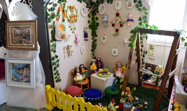 Kadınların kursta örgü ile ürettikleri el emeği bebek ve süs eşyalardan oluşturdukları aile köşesi büyük beğeni topladı. Sergiyle hünerlerini görücüye çıkaran kadınlar, bebek ve çocukları için hazırladıkları elbiseleri de sergiledi.