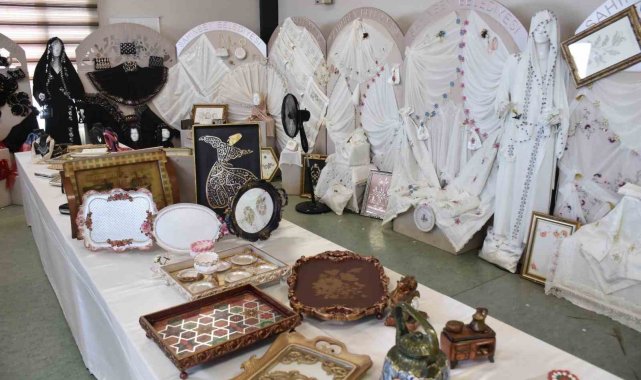 Gaziantep'te Şahinbey Belediyesi tarafından kadınların hem meslek öğrenmesi hem aile bütçelerine katkı sağlaması hem de kızlarının çeyizlerini hazırlamaları amacıyla açtığı mefruşat kursuna katılan kursiyerler, yıl boyunca ürettikleri el emeği ürünleri sergiyle taçlandırdı.