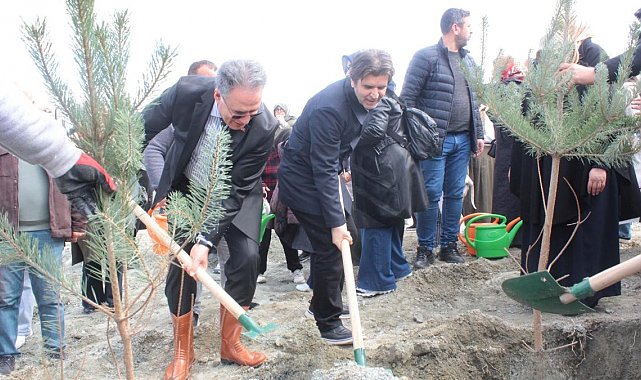 Konuşmaların ardından Rektör Prof. Dr. Nusret Akpolat ve beraberindekiler fidan dikerek geleceğe nefes oldu.
