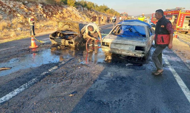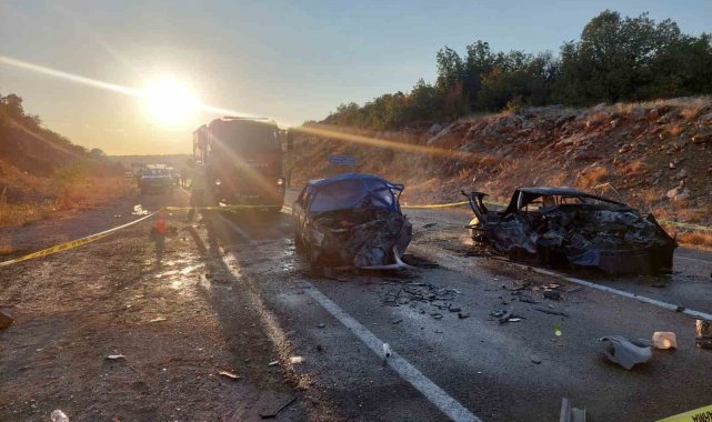 Kafa kafaya çarpışan iki otomobil alev aldı: 3 ölü, 5 yaralı