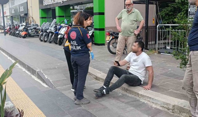 Antalya'nın Manavgat ilçesiıyd caddede yürürken bir anda düşerek başını çöp konteynerine çarpan şahıs baygınlık geçirdi. Vatandaşların yardımıyla düştüğü yerden kaldırılan şahıs, olay yerine gelen sağlık ekibinin ısrarına rağmen hastaneye gitmeyi kabul etmedi.