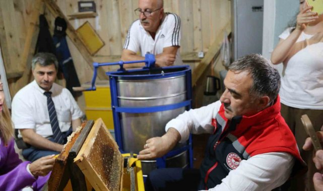 Artvin İl Tarım ve Orman Müdürlüğü ile Artvin Arıcılar Birliği'nin ortaklaşa düzenlediği programa Borçka Kaymakamı Betül Büyükkılıç, kurum müdürleri, arıcılar ve vatandaşlar katıldı. Bal sağımı, arı üreticisi Recep Levent Gülsuyu'na ait peteklikte yapıldı. Kovanlardan çıkarılan bal dolu çerçeveler özel makinelerde süzülerek tenekelere dolduruldu.