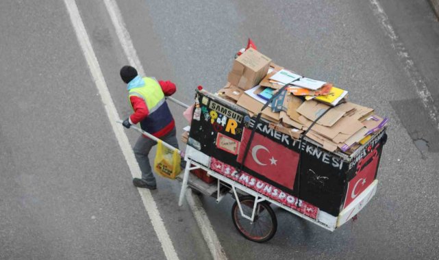Samsun'da bir kağıt-karton toplayıcısının çekçek arabası, yazdığı anlamlı yazılar ve özgün süslemeleriyle dikkat çekiyor. Arabasında "Ekmek Teknesi" yazan vatandaş, geçimini kağıt toplayarak sağlıyor. Çekçeğini Türk bayrağı ve Samsunspor atkılarıyla süsleyen kağıt toplayıcısı, yaşam mücadelesini yansıtıyor. Azmiyle dikkat çeken vatandaşın ekmek mücadelesi görenleri hem tebessüm ettiriyor hem duygulandırıyor hem de ders veriyor.