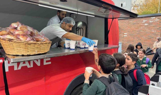 Kağıthane Belediyesi, okulların çıkış saatlerinde öğrenciler ve aileleri için mobil büfe araçlarıyla sıcak çorba ikramında bulunuyor.