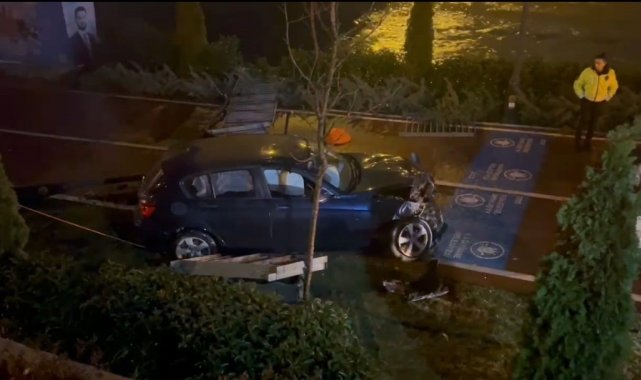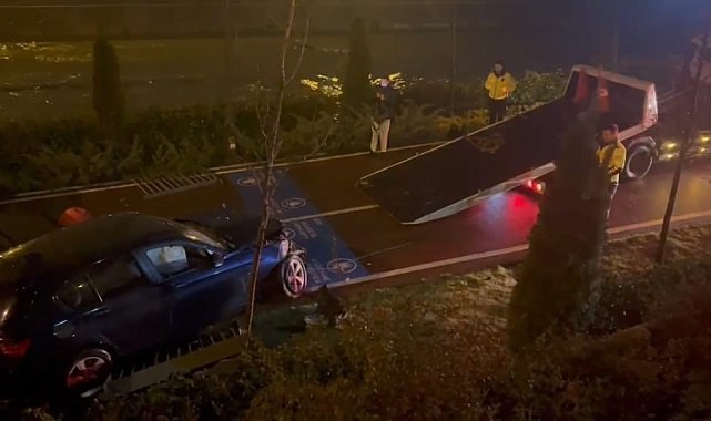 Kağıthane'de alkollü sürücünün kullandığı otomobil dere kenarındaki yürüyüş yoluna uçtu