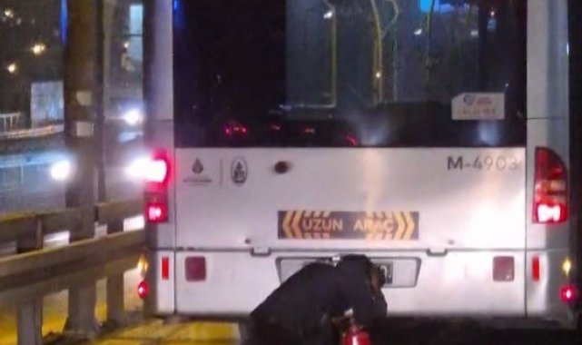 Kağıthane'de metrobüsün motor bölümü yandı, seferler kısa süre durduruldu