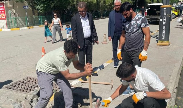 Kağızman belediyesine kayyum atanmasının ardından ilçe merkezinde kaldırım çalışmaları başladı.
