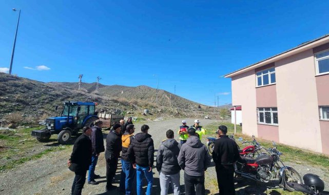 Kars'ta İl Jandarma Komutanlığı trafik ekipleri Kağızman Araç Muayene İstasyonu'nda muayene sırası bekleyen motosiklet sürücülerine motosiklet kaza durumu, kazalarda yapılan hatalar, virajlara düşük hızla girilmesi, takip mesafe kuralları, kask ve özel tertibat kullanımı gibi hayati önem taşıyan konularda bilgilendirme yaparak dikkatli olmaları konusunda uyardı.