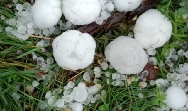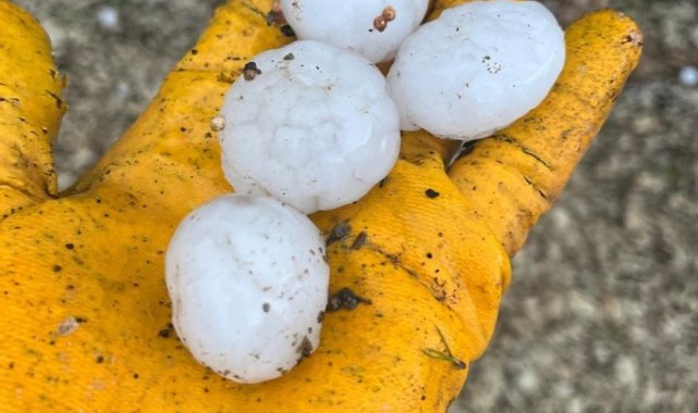 Kahramanmaraş'ın merkeze bağlı Bertiz bölgesi ve Afşin ilçesinde etkili olan sağanak, yerini kısa sürede ceviz büyüklüğündeki doluya bıraktı. Yaklaşık 10 dakika süren dolu yağışı, bölgedeki meyve bahçeleri ve tarım arazilerinde ciddi zarara yol açtı.