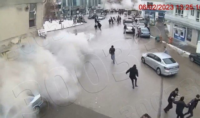 Görüntülere, bazı binaların büyük bir gürültüyle çöktüğü, çöken yapıların çevresinde yoğun toz bulutunun oluştuğu ve yollara beton parçalarının savrulduğu yansıdı. Depremin etkisiyle çevrede bulunan iş yerlerinin camlarının kırıldığı, tabelaların sallandığı ve çevrede kısa sürede büyük bir kargaşa yaşandığı da kaydedildi.
