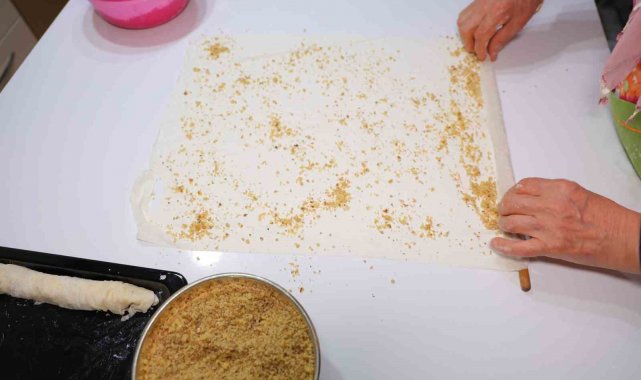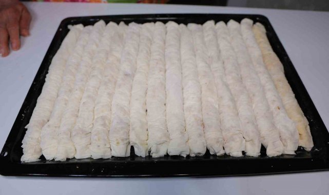 Tatlı yapımının detaylarını anlatan Karageçen, "Hamuruna yumurta, süt, sıvı yağ ve tereyağı ekleyerek yoğuruyoruz. Dinlendirdikten sonra küçük bezelere ayırıp incecik açıyoruz. Ardından oklavaya sarıp kıvırarak şekil veriyoruz. İçine ceviz koyup üzerine de tereyağı ya da zeytinyağı gezdiriyoruz. Piştikten sonra şerbetini döküp fıstık tozuyla süslüyoruz. Her bayram yapıyoruz. Misafirlerimize, çocuklarımıza ikram ediyoruz. Allah sağlıkla yemeyi nasip etsin" diye konuştu.