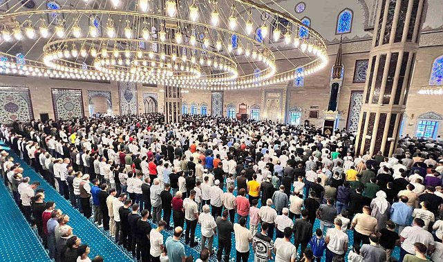 Kahramanmaraş'ta Kurban Bayramı nedeniyle binlerce vatandaş Türkiye'nin dördüncü büyük camisi olan Abdülhamit Han'da saf tuttu hep birlikte amin dedi.