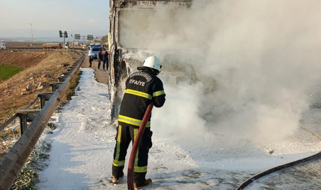 Kahramanmaraş'ta seyir halindeki beton mikserinin kabin kısmı yanarak kullanılamaz hale geldi.