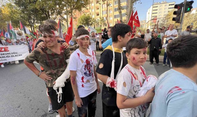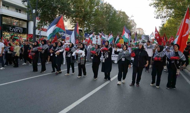 Ellerinde Türk ve Filistin bayrakları ile Alparslan Türkeş Bulvarı'nda toplanan vatandaşlar, Necip Fazıl Kültür Merkezi önüne kadar yürüdü. Yürüyüşte Büyükşehir Belediyesi bayrakları ücretsiz dağıttı. ABD Başkanı Trump ve İsrail Başbakanı Netanyahu maskesi takan bazı vatandaşlar, Filistinli çocuklara yapılan zulmü canlandıran kısa bir tiyatro gösterisi sergiledi. İsrail askerlerinin Filistinli çocukları horladığı ve ezdiği sahneler, vatandaşların büyük tepkisini çekti. Yürüyüş boyunca "Kahrolsun İsrail", "Yaşasın özgür Filistin" sloganları atılırken, sık sık tekbir sesleri yükseldi. Necip Fazıl Kültür Merkezi önünde tamamlanan programda şiirler okunarak, dualar edildi ve konuşmalar yapıldı. Program sonunda MADO tarafından vatandaşlara çeşitli ikramlarda bulunuldu.