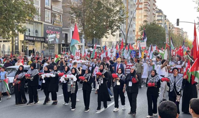 Kahramanmaraş'ta sivil toplum kuruluşları ve Büyükşehir Belediyesi öncülüğünde binlerce vatandaşın katılımı ile Filistin'e destek yürüyüşü düzenlendi.