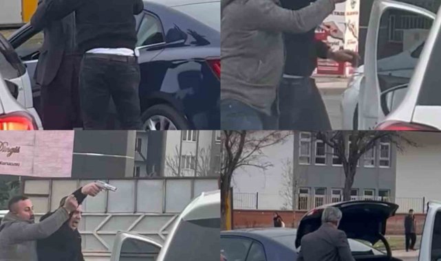 Kahramanmaraş'ta trafikte çıkan tartışmada bir sürücü kavga ettiği adamı silahla tehdit etti. O anlar, bir vatandaşın cep telefonu kamerasına yansırken, çevredeki vatandaşların müdahalesiyle kavga sonlandı.