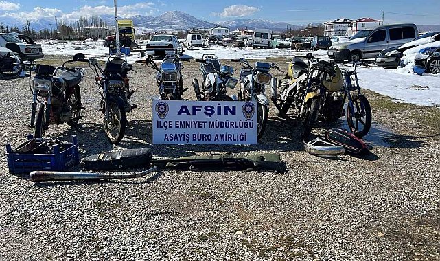 Edinilen bilgiye göre, Afşin İlçe Emniyet Müdürlüğü ekipleri, 7 motosikletin çalınmasına ilişkin çalışma yaptı. Ekipler hırsızlık olaylarına karıştığı tespit edilen İ.S. ve H.H.S.'yi yakaladı. Gözaltındaki iki şüphelinin işlemleri sürüyor.