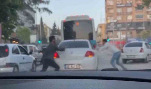 Kahramanmaraş'ta trafikte iki grup arasında çıkan kavga cep telefonu kamerası ile görüntülendi.