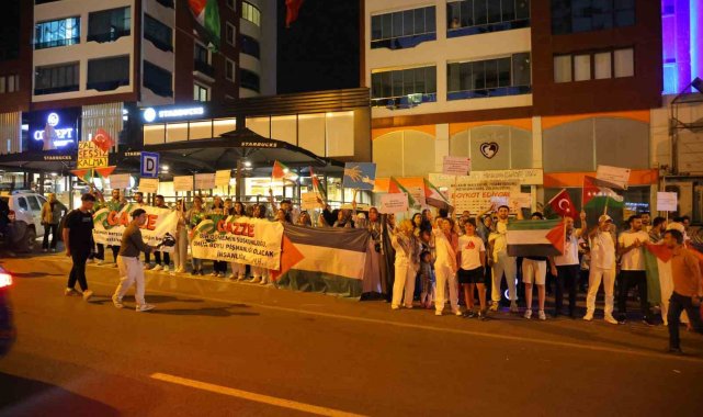 Kent merkezinde Starbucks'un önünde toplanan vatandaşlar, ellerinde taşıdıkları pankart ve Filistin bayraklarıyla İsrail'i protesto etti. Gösteri sırasında yoldan geçen araç sürücüleri de kornalara basarak göstericilere destek verdi. Vatandaşlardan bazıları dua ederken, bazıları da şiir okuyarak Filistin halkına destek mesajı verdi.