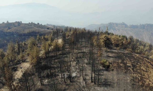 Kahramanmaraş'ta yangın sonrası küle dönen ormanlık alan dronla görüntülendi