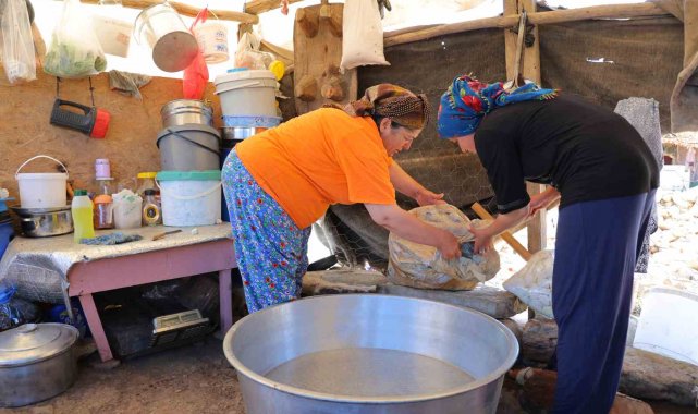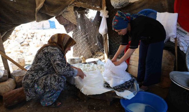 Kahramanmaraş'ın Ahır Dağı zirvesindeki Yedikuyular Yaylası'nda yaşayan yaylacılar, geleneksel yöntemlerle peynir ve çökelek üretimine devam ediyor.