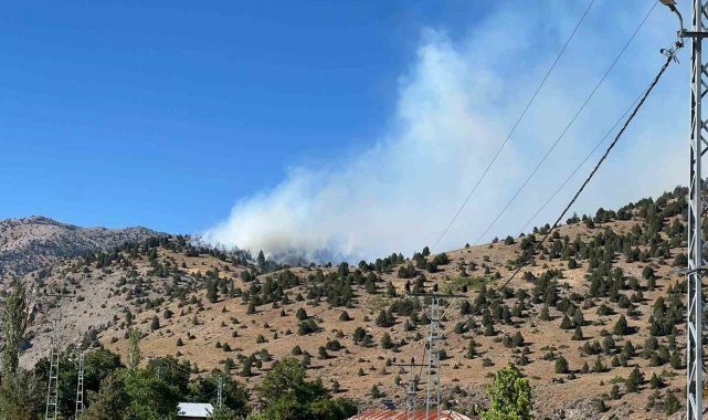 Kahramanmaraş'ın Göksun ilçesinde çıkan orman yangınına havadan ve karadan müdahalenin sürdüğü bildirildi.