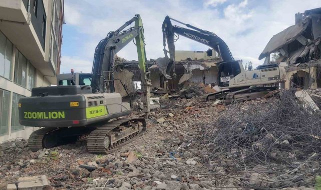 Asrın felaketi sonrası yıkımın yaşandığı ilçelerden biri Nurhak'ta da ağır hasarlı binalar kontrollü bir şekilde yıkılıyor