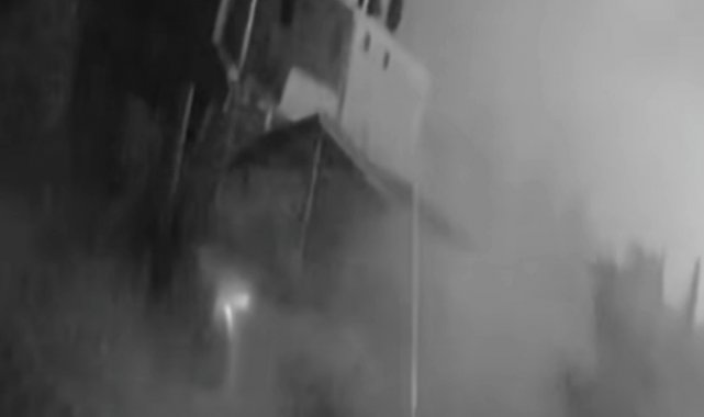 Kahramanmaraş'ta meydana gelen ve Hatay'da büyük yıkıma yol açan asrın felâketi diye adlandırılan depremin, yeni güvenlik kamerası görüntüsü ortaya çıktı. Hatay'ın Kırıkhan ilçesine bağlı Karadurmuşlu Köyü'nde bir çiftlik evinin depremin şiddetiyle yıkılma anı kameraya yansıdı. Görüntüde çiftliğin alt ambar kısmında bulunan traktörlerin evin yıkılmasını önlediği görüldü.