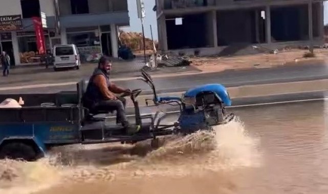 Adıyaman'ın Kahta ilçesinde yağan yağmur sonrası yollar göle döndü.