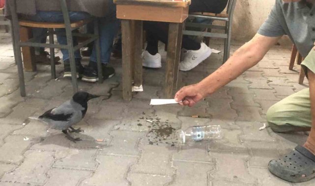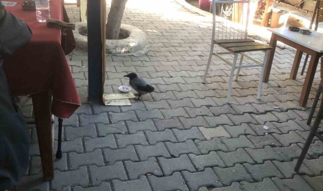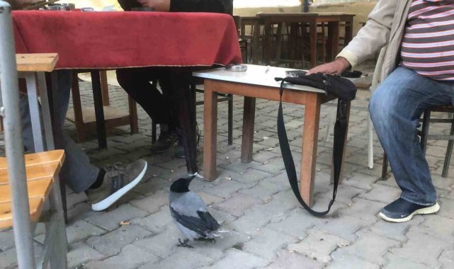 Kahvehane bağımlısı karga mahallenin maskotu haline geldi