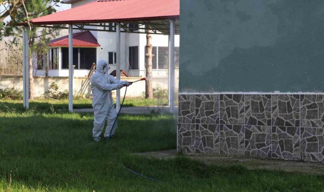 Samsun'un Terme ilçesinde bulunan bir mahallede kahverengi kokarca ile mücadele çerçevesinde 850 hane, 23 kamu alanı ve 623 ahır ile benzeri yapıda, teknik personeller eşliğinde biyosidal ilaçlarla ilaçlama gerçekleştirildi.