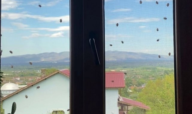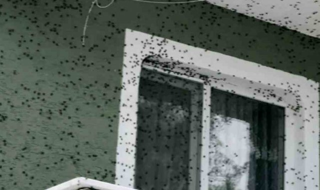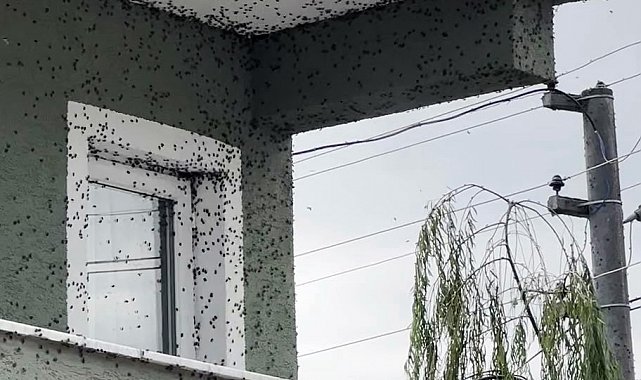 Kahverengi kokarcaların sardığı bina adeta renk değişti
