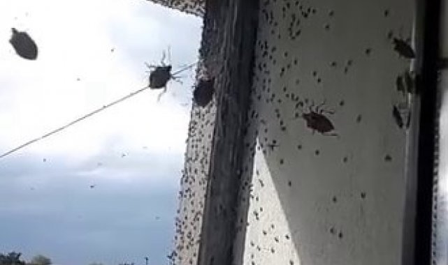 Kahverengi kokarca böceği kabusu geri döndü. Sakarya'nın Ferizli ve Kaynarca ilçelerinin bazı bölgelerinde adeta istilaya yol açan böcekler, bir binanın dış cephesini ise tamamen sardı.