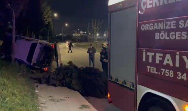 Kaza, Çerkezköy Organize Sanayi Bölgesi Fatih Bulvarı'nda meydana geldi. Edinilen bilgilere göre, kavşakta direksiyon hakimiyetini kaybederek virajı alamayan 60 AFU 728 plakalı otomobil, kontrolden çıktıktan sonra kaldırıma çarparak yan yattı. Kazayı görenler durumu 112 Acil Çağrı Merkezine bildirdi. İhbar üzerine olay yerine sağlık, polis ve itfaiye ekipleri sevk edildi. Gelen sağlık ekiplerinin ilk müdahalesinin ardından, yaralı 2 kişi ambulanslarla hastaneye kaldırılarak tedavi altına alındı. Polisin kazayla ilgili başlattığı inceleme sürüyor.